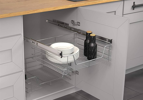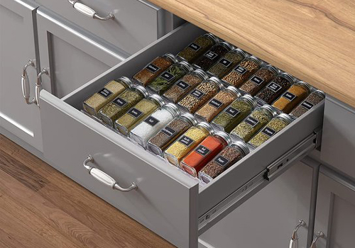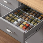 (The kitchen drawer is located between the sink and the kitchen cabinets. The kitchen drawers often contain cutlery.) |