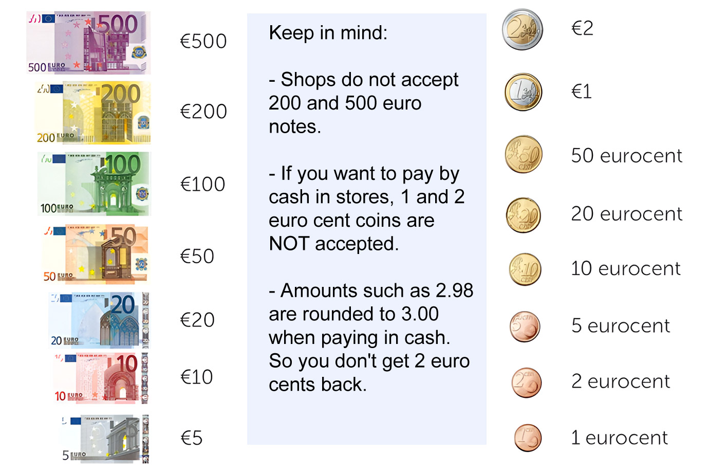 Please note: Dutch people always pronounce whole euro amounts in the singular. So when we talk about 10 euros, we say 10 euro and not 10 euroS (plural). Some will use the plural + diminutive when they talk about euro’s. Like: Ik kreeg 100 eurootjes. (i get 100 euro’s)