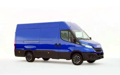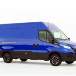In een bestelwagen passen veel spullen. De bestelwagen is blauw.